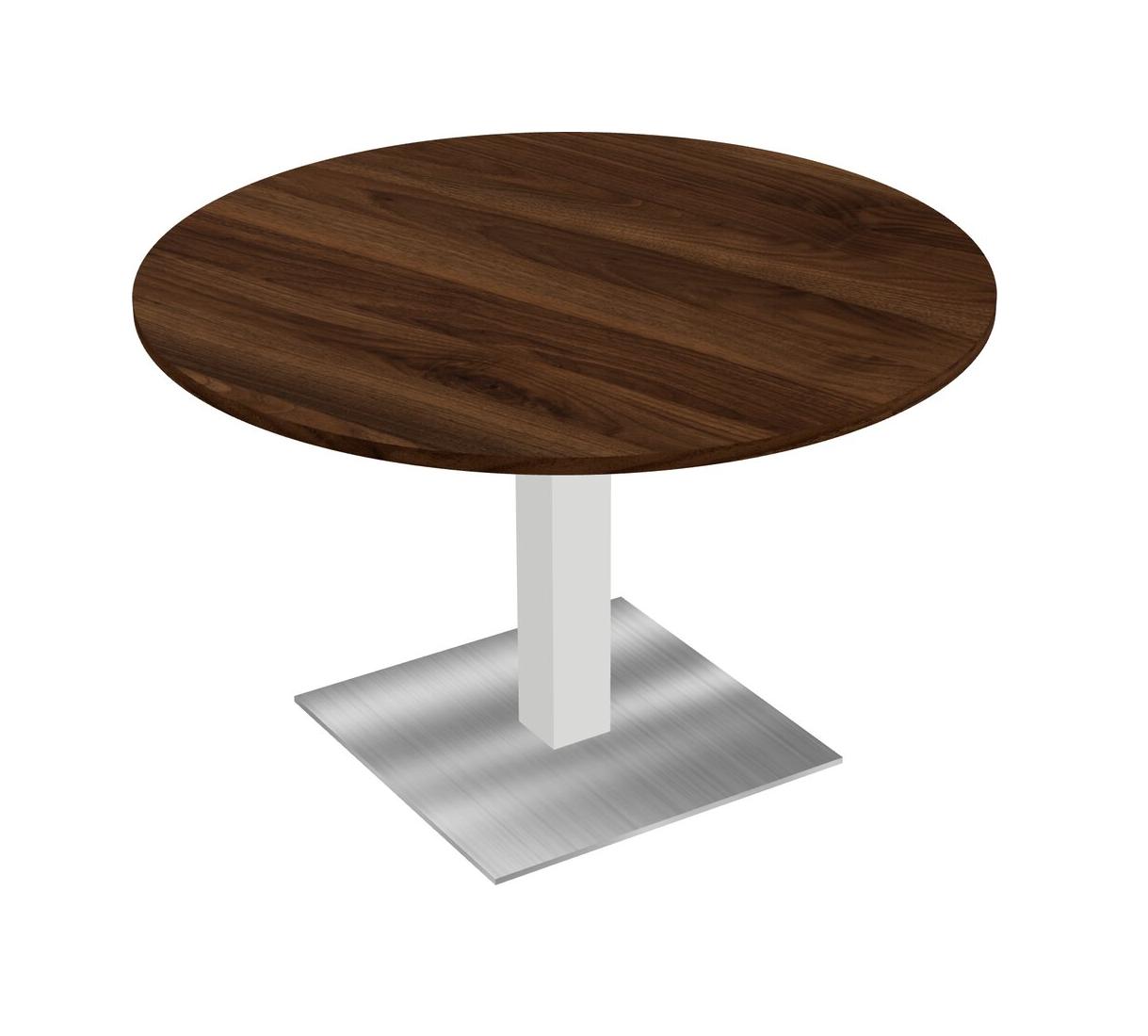 Modular Office, Restaurant, Cafeteria, Lunch Room & Food Service Table With Columbia Walnut Tabletop & White Square Leg & Chrome Square Base Plate