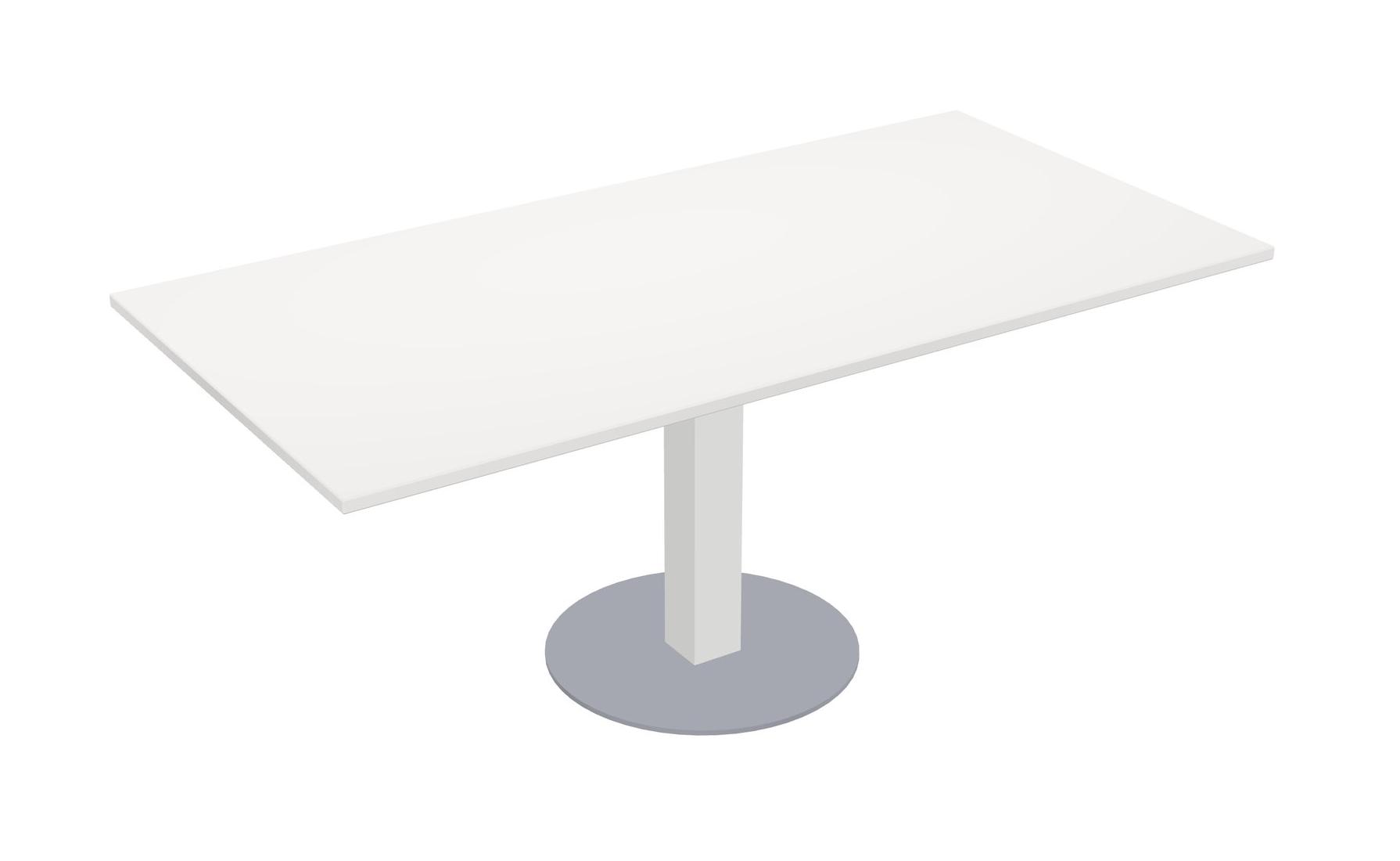 Modular Office, Restaurant, Cafeteria, Lunch Room & Food Service Table With White Tabletop & White Square Leg & Grey Round Base Plate