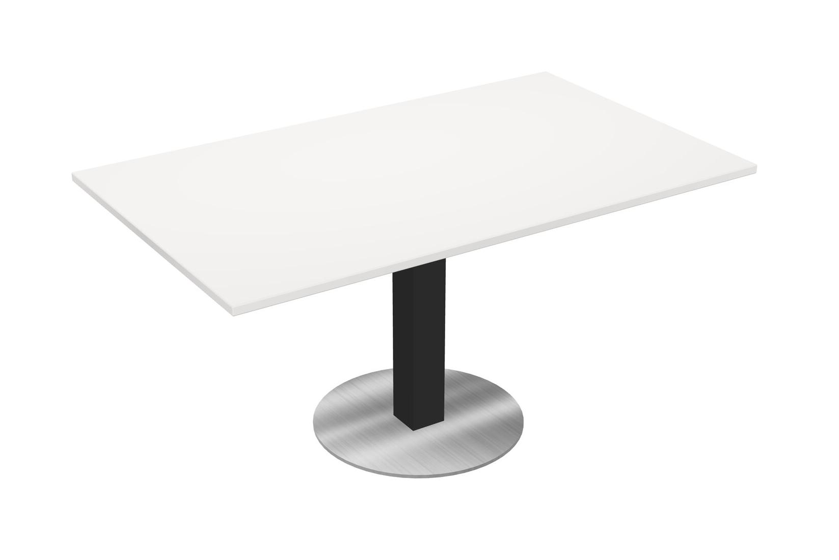 Modular Office, Restaurant, Cafeteria, Lunch Room & Food Service Table With White Tabletop & Black Square Leg & Chrome Round Base Plate