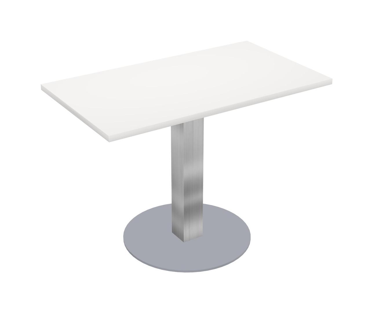 Modular Office, Restaurant, Cafeteria, Lunch Room & Food Service Table With White Tabletop & Chrome Square Leg & Grey Round Base Plate