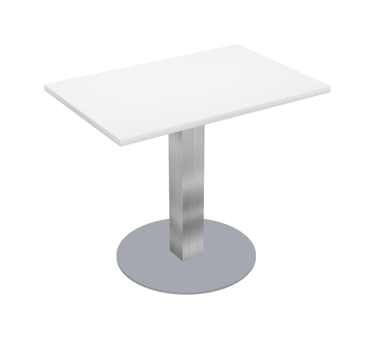 Modular Office, Restaurant, Cafeteria, Lunch Room & Food Service Table With White Tabletop & Chrome Square Leg & Grey Round Base Plate