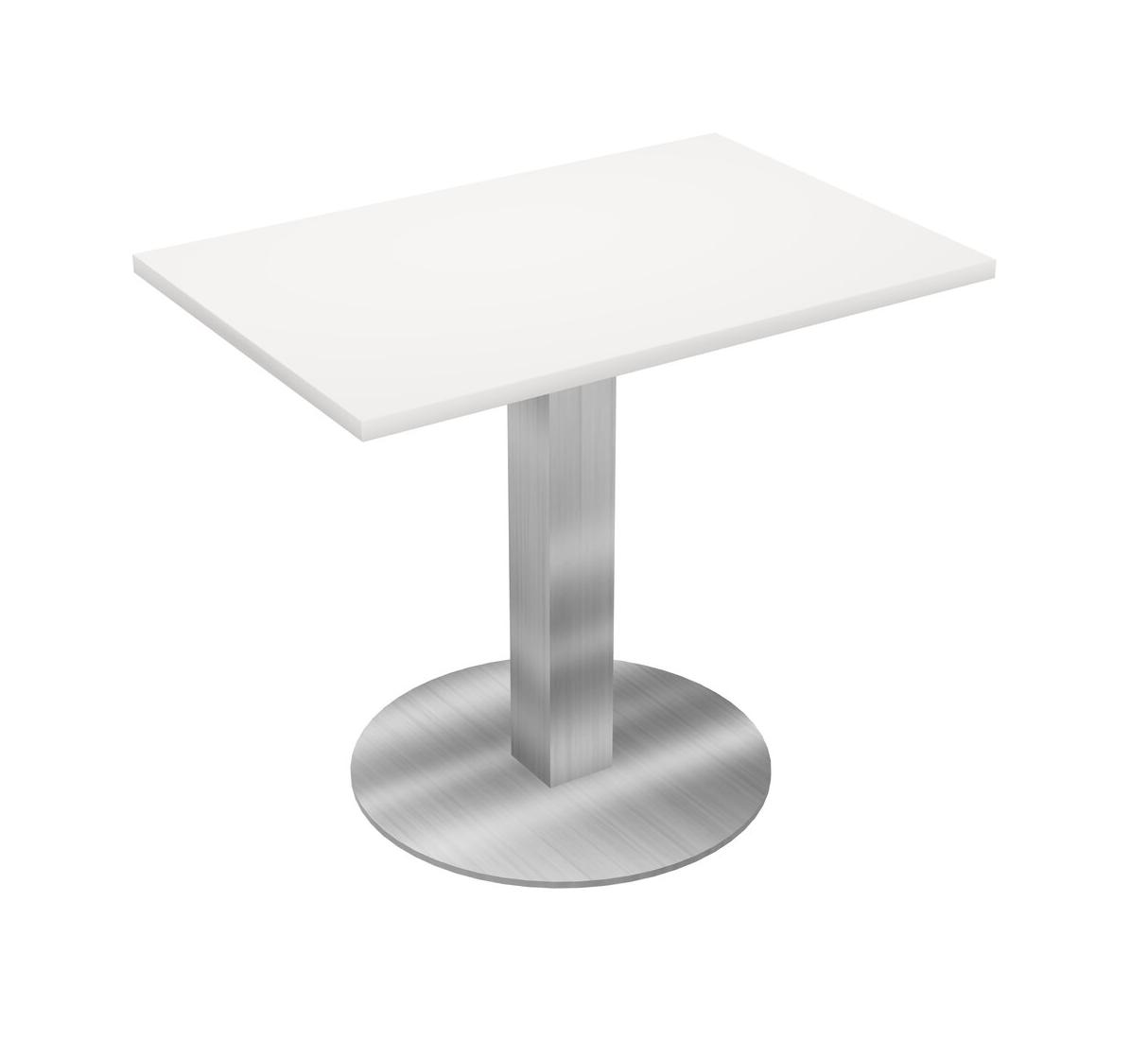 Modular Office, Restaurant, Cafeteria, Lunch Room & Food Service Table With White Tabletop & Chrome Square Leg & Chrome Round Base Plate