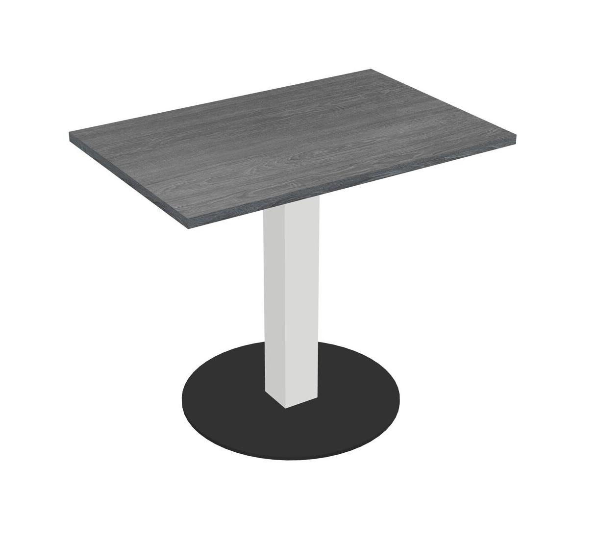 Modular Office, Restaurant, Cafeteria, Lunch Room & Food Service Table With Grey Tabletop & White Square Leg & Black Round Base Plate