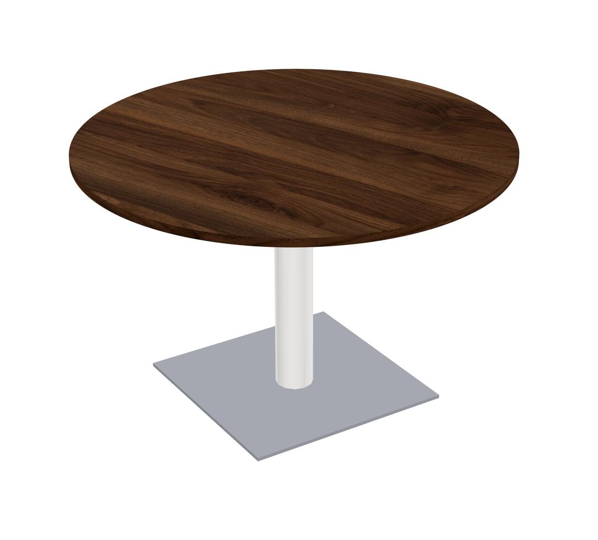Modular Office, Restaurant, Cafeteria, Lunch Room & Food Service Table With Columbia Walnut Tabletop & White Round Leg & Grey Square Base Plate