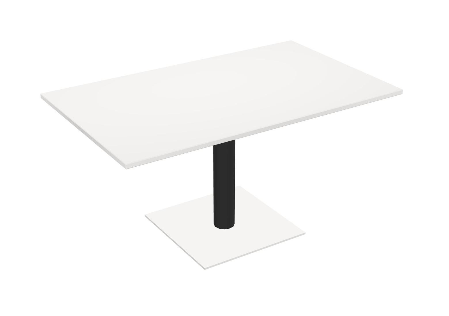 Modular Office, Restaurant, Cafeteria, Lunch Room & Food Service Table With White Tabletop & Black Round Leg & White Square Base Plate