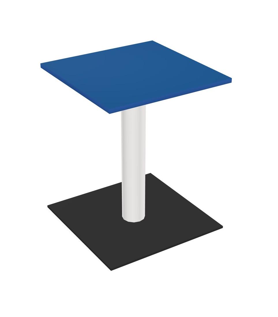 Modular Office, Restaurant, Cafeteria, Lunch Room & Food Service Table With Prism Blue Tabletop & White Round Leg & Black Square Base Plate