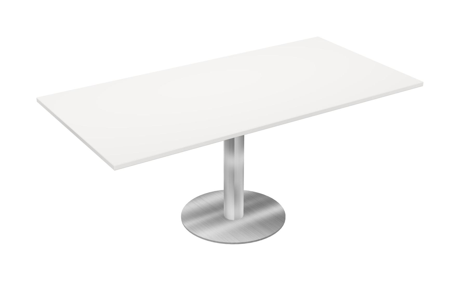 Modular Office, Restaurant, Cafeteria, Lunch Room & Food Service Table With White Tabletop & Chrome Round Leg & Chrome Round Base Plate