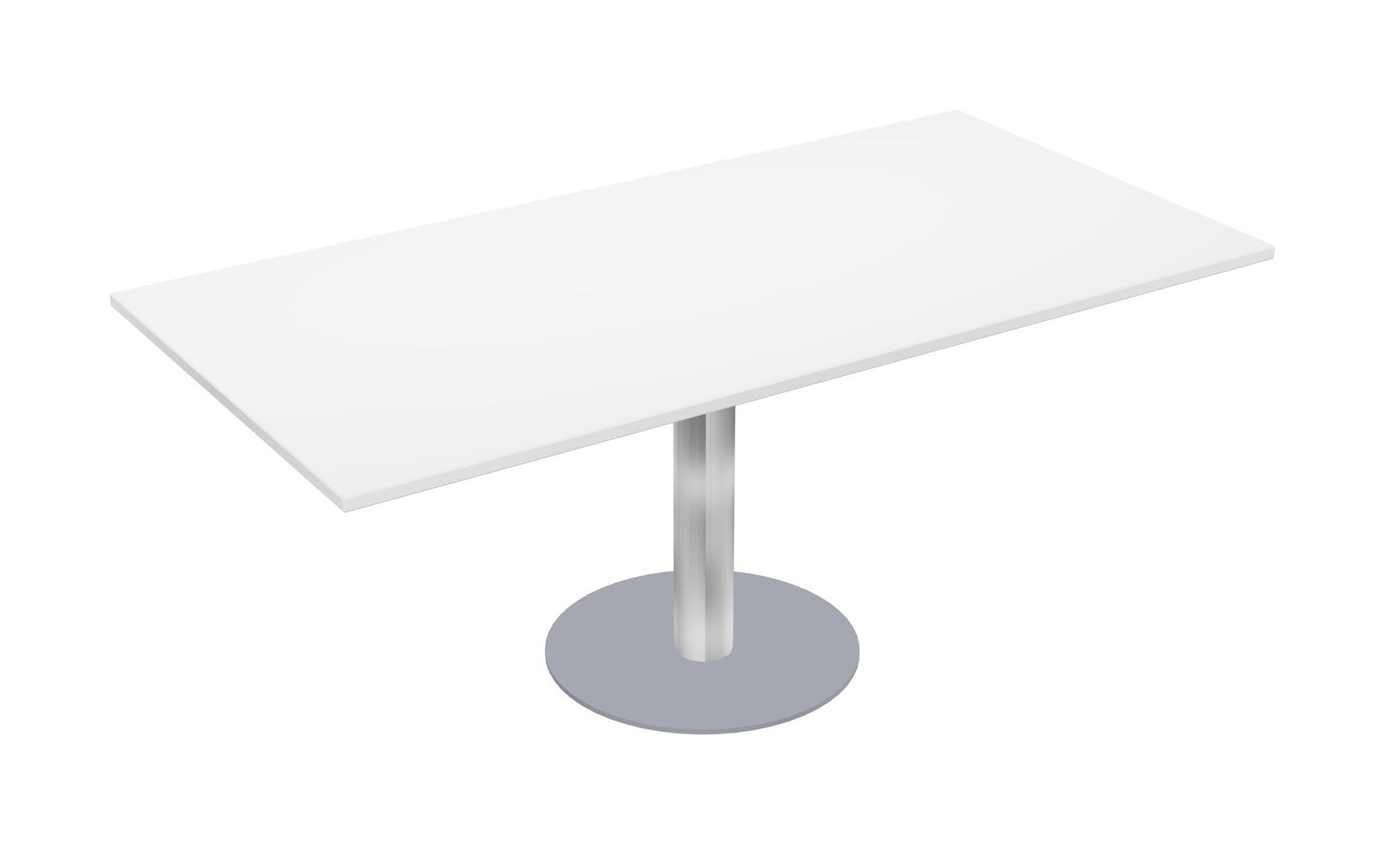 Modular Office, Restaurant, Cafeteria, Lunch Room & Food Service Table With White Tabletop & Chrome Round Leg & Grey Round Base Plate