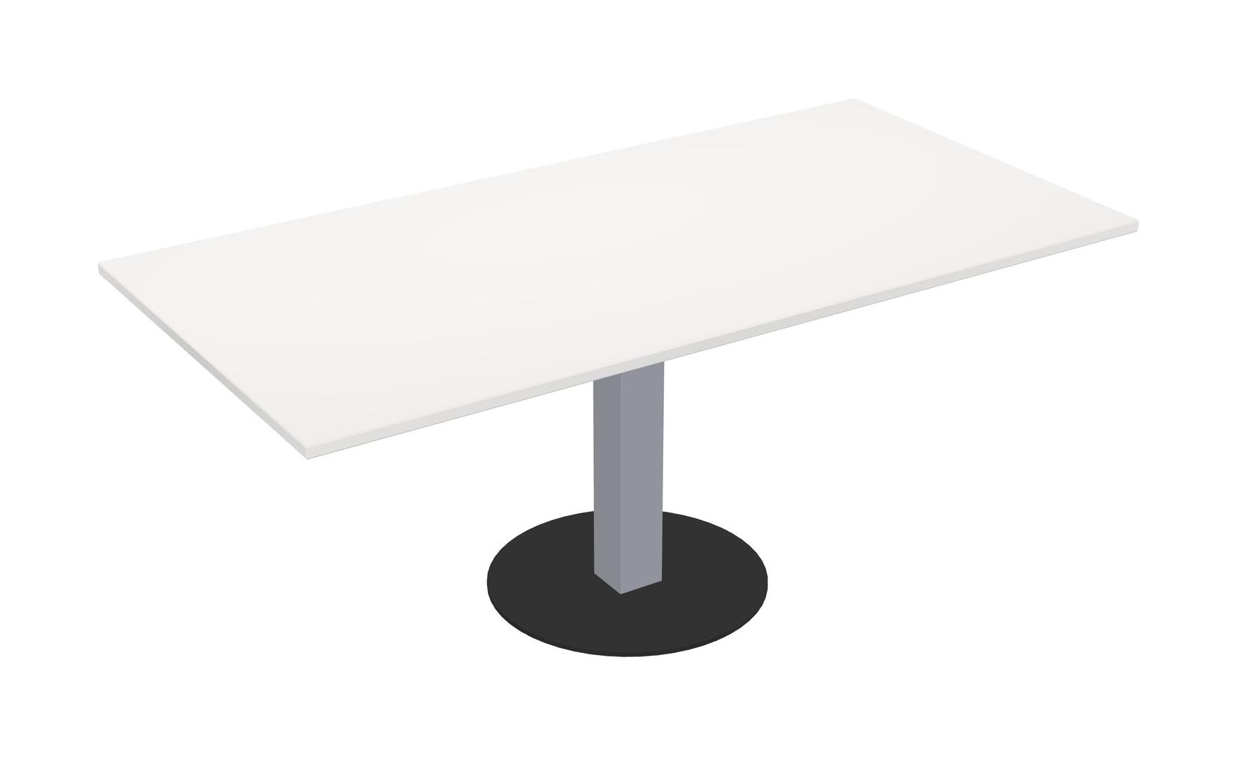 Modular Office, Restaurant, Cafeteria, Lunch Room & Food Service Table With White Tabletop & Grey Square Leg & Black Round Base Plate