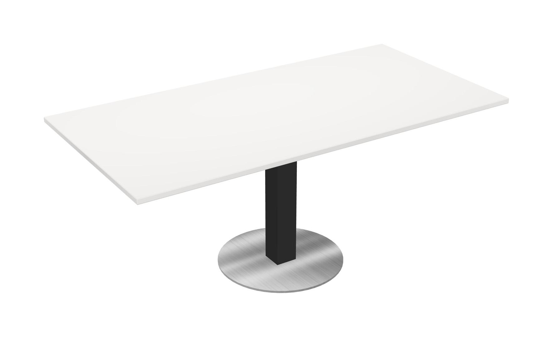 Modular Office, Restaurant, Cafeteria, Lunch Room & Food Service Table With White Tabletop & Black Square Leg & Chrome Round Base Plate