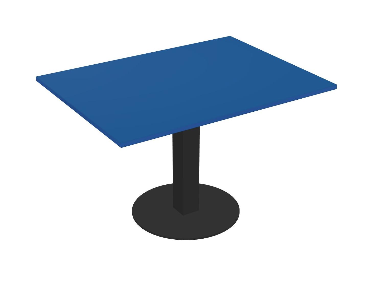 Modular Office, Restaurant, Cafeteria, Lunch Room & Food Service Table With Prism Blue Tabletop & Black Square Leg & Black Round Base Plate