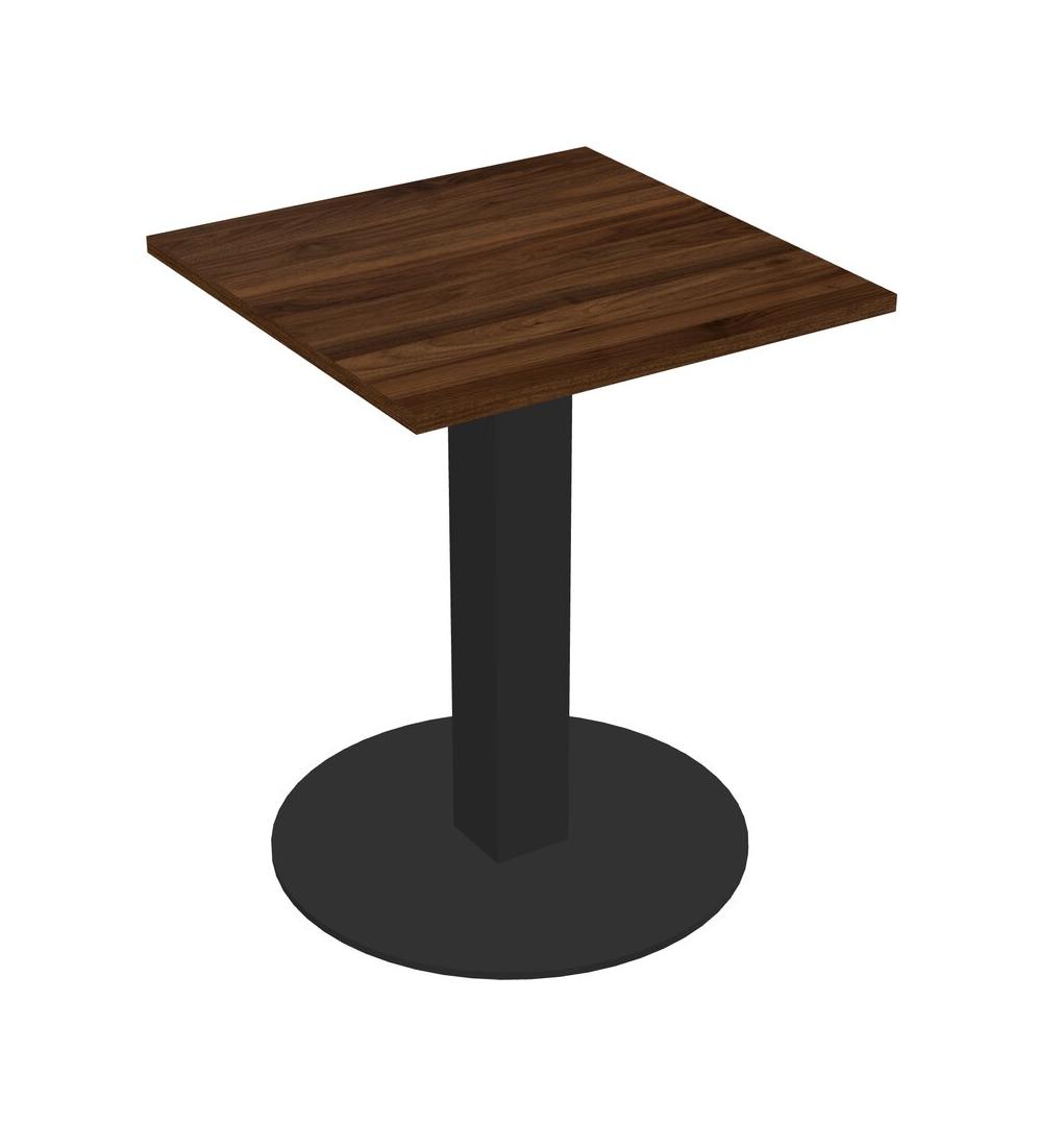 Modular Office, Restaurant, Cafeteria, Lunch Room & Food Service Table With Columbia Walnut Tabletop & Black Square Leg & Black Round Base Plate