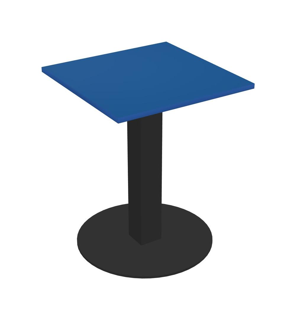 Modular Office, Restaurant, Cafeteria, Lunch Room & Food Service Table With Prism Blue Tabletop & Black Square Leg & Black Round Base Plate