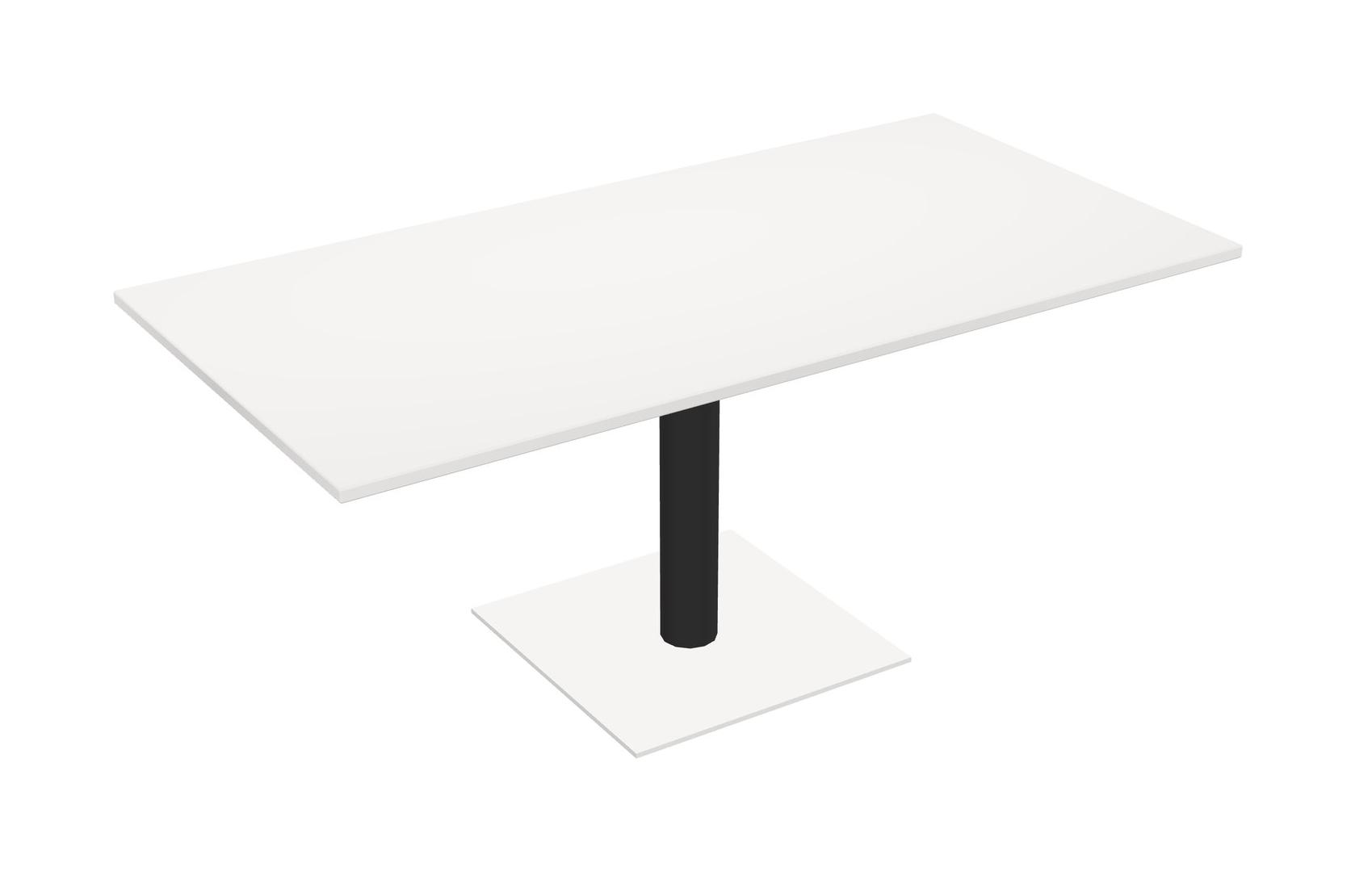 Modular Office, Restaurant, Cafeteria, Lunch Room & Food Service Table With White Tabletop & Black Round Leg & White Square Base Plate