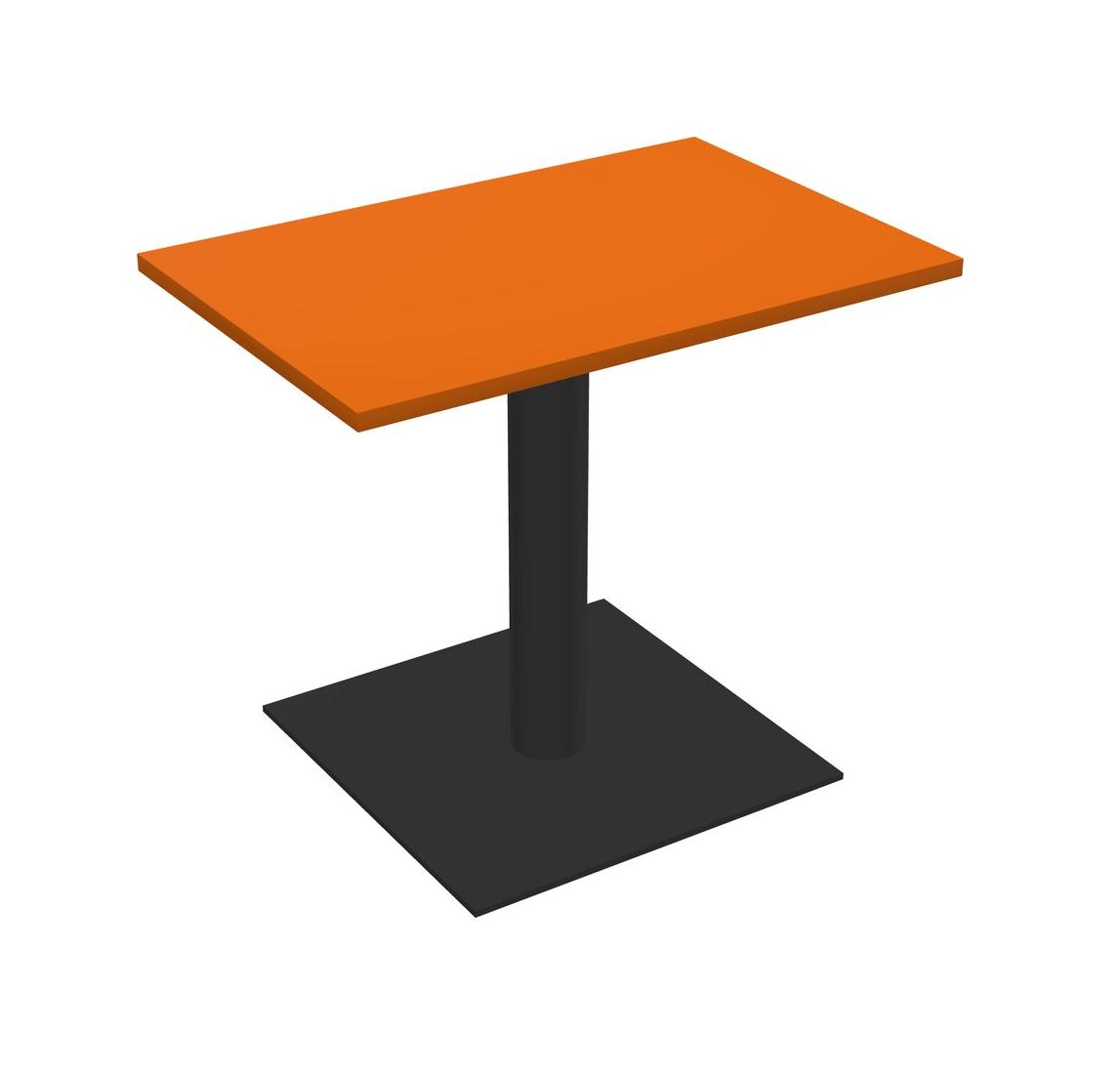 Modular Office, Restaurant, Cafeteria, Lunch Room & Food Service Table With Orange Tabletop & Black Round Leg & Black Square Base Plate