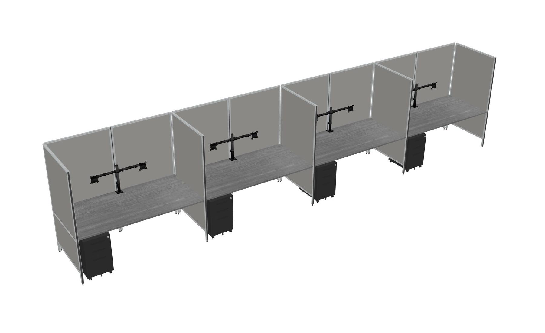 Grey Flexible Panel System For 4 + Metal Mobile Drawers + Monitor Arm (double Arms)