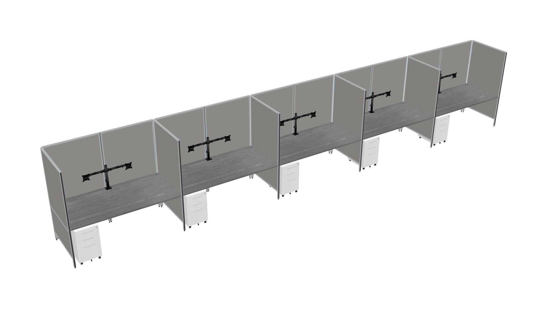 Grey Flexible Panel System For 5 + Metal Mobile Drawers + Monitor Arm (double Arms)