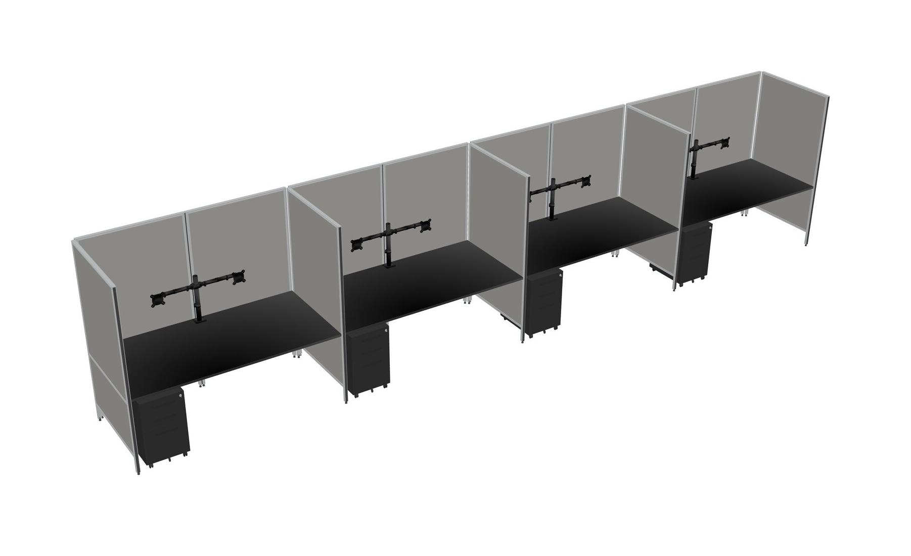Black Flexible Panel System For 4 + Metal Mobile Drawers + Monitor Arm (double Arms)