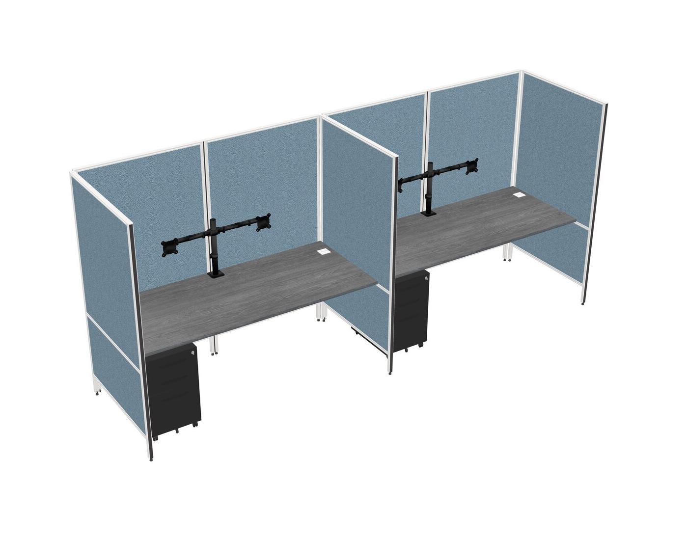 Grey Flexible Panel System For 2 + Metal Mobile Drawers + Monitor Arm (double Arms)