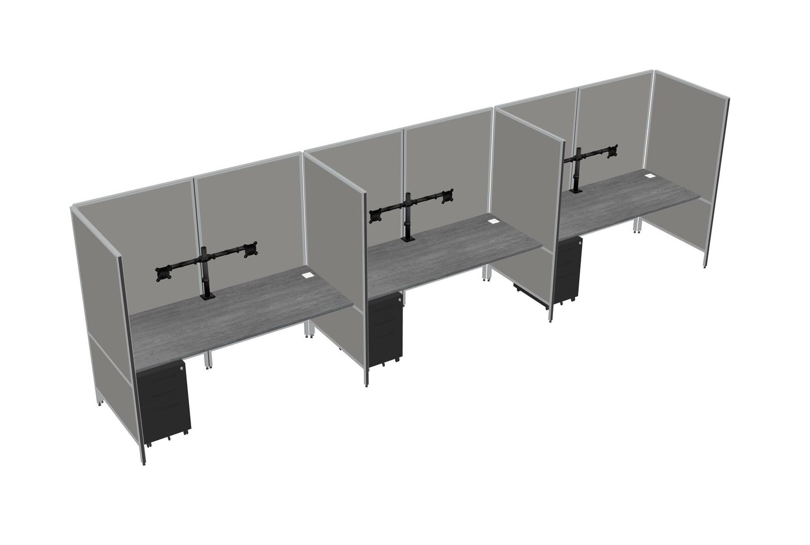 Grey Flexible Panel System For 3 + Metal Mobile Drawers + Monitor Arm (double Arms)
