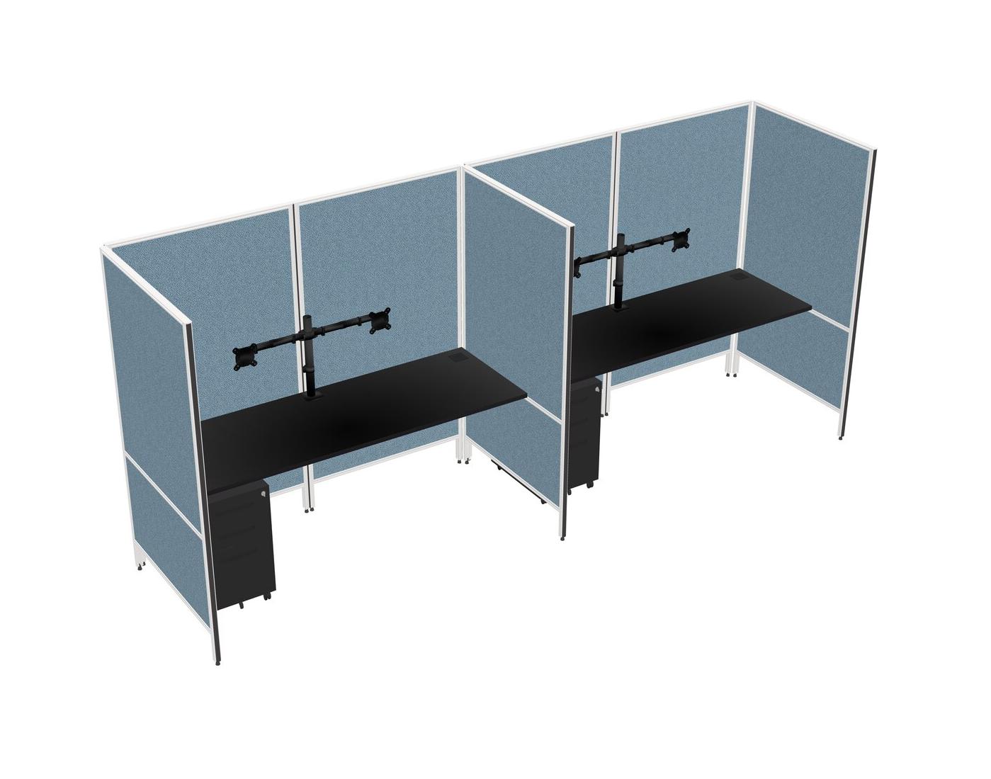 Black Flexible Panel System For 2 + Metal Mobile Drawers + Monitor Arm (double Arms)