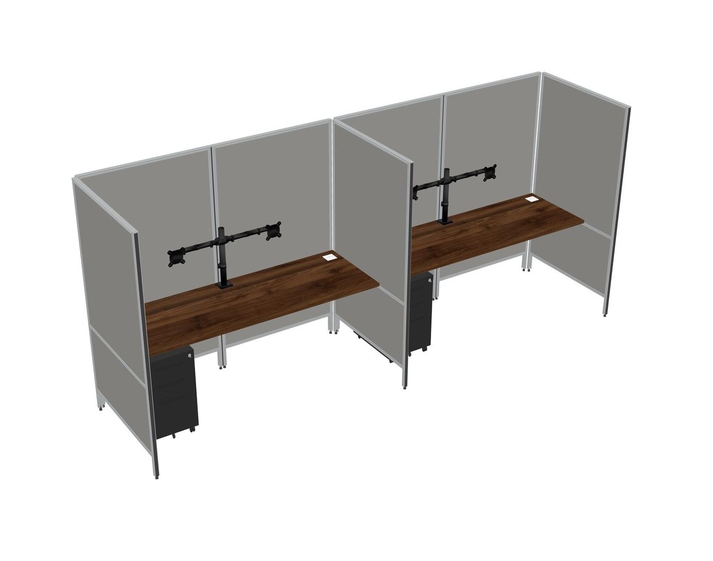Columbia Walnut Flexible Panel System For 2 + Metal Mobile Drawers + Monitor Arm (double Arms)