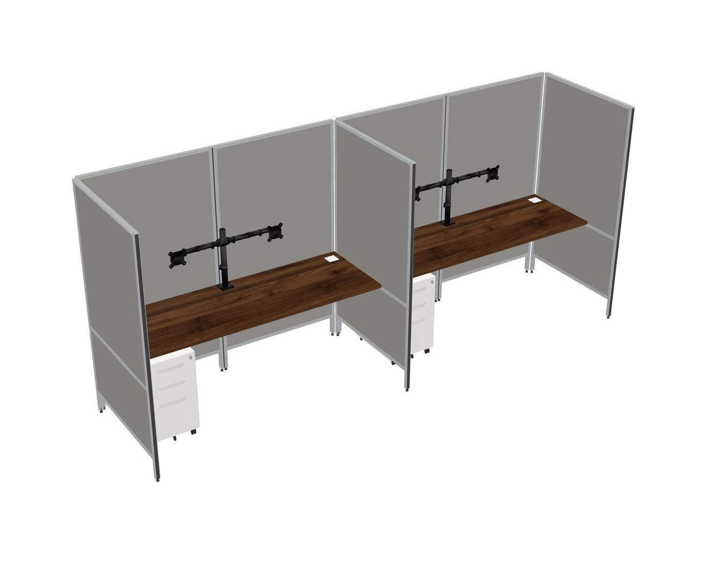 Columbia Walnut Flexible Panel System For 2 + Metal Mobile Drawers + Monitor Arm (double Arms)