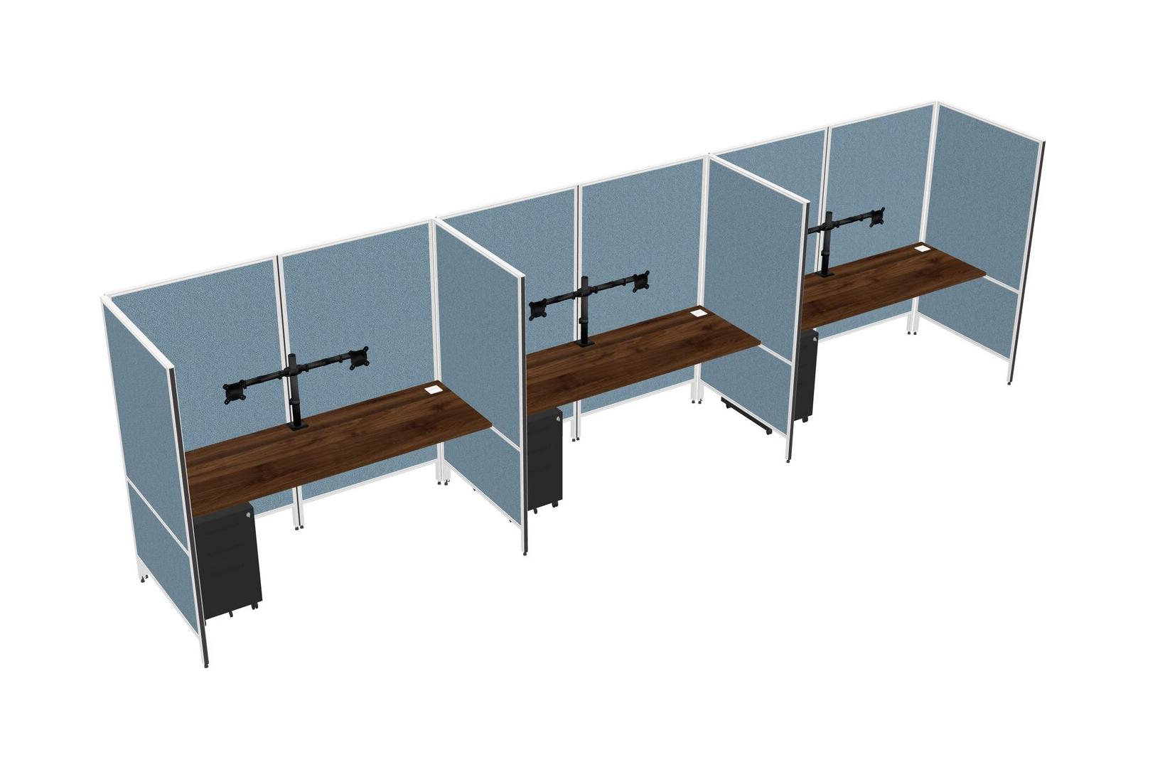 Columbia Walnut Flexible Panel System For 3 + Metal Mobile Drawers + Monitor Arm (double Arms)