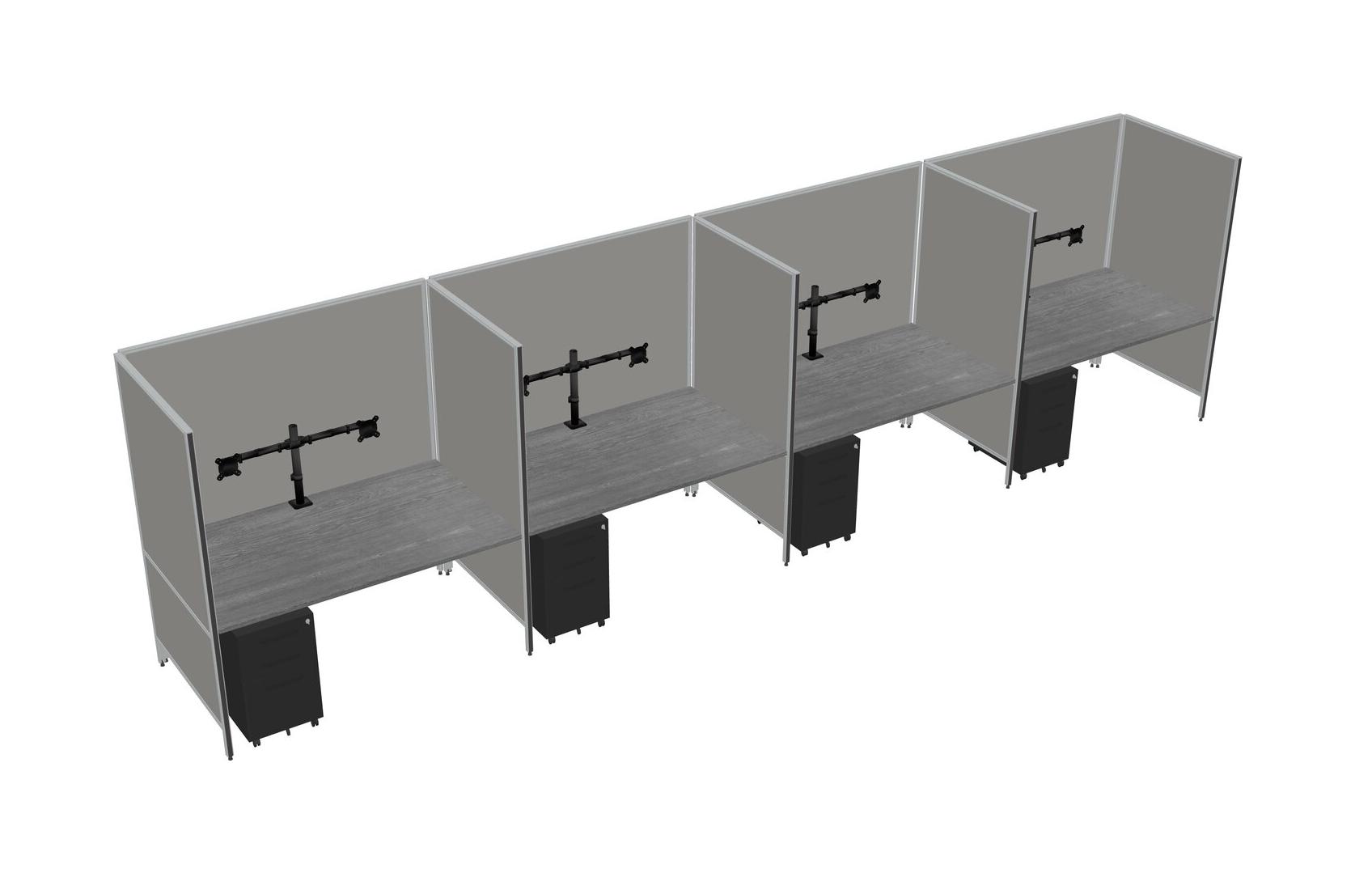Grey Flexible Panel System For 4 + Metal Mobile Drawers + Monitor Arm (double Arms)
