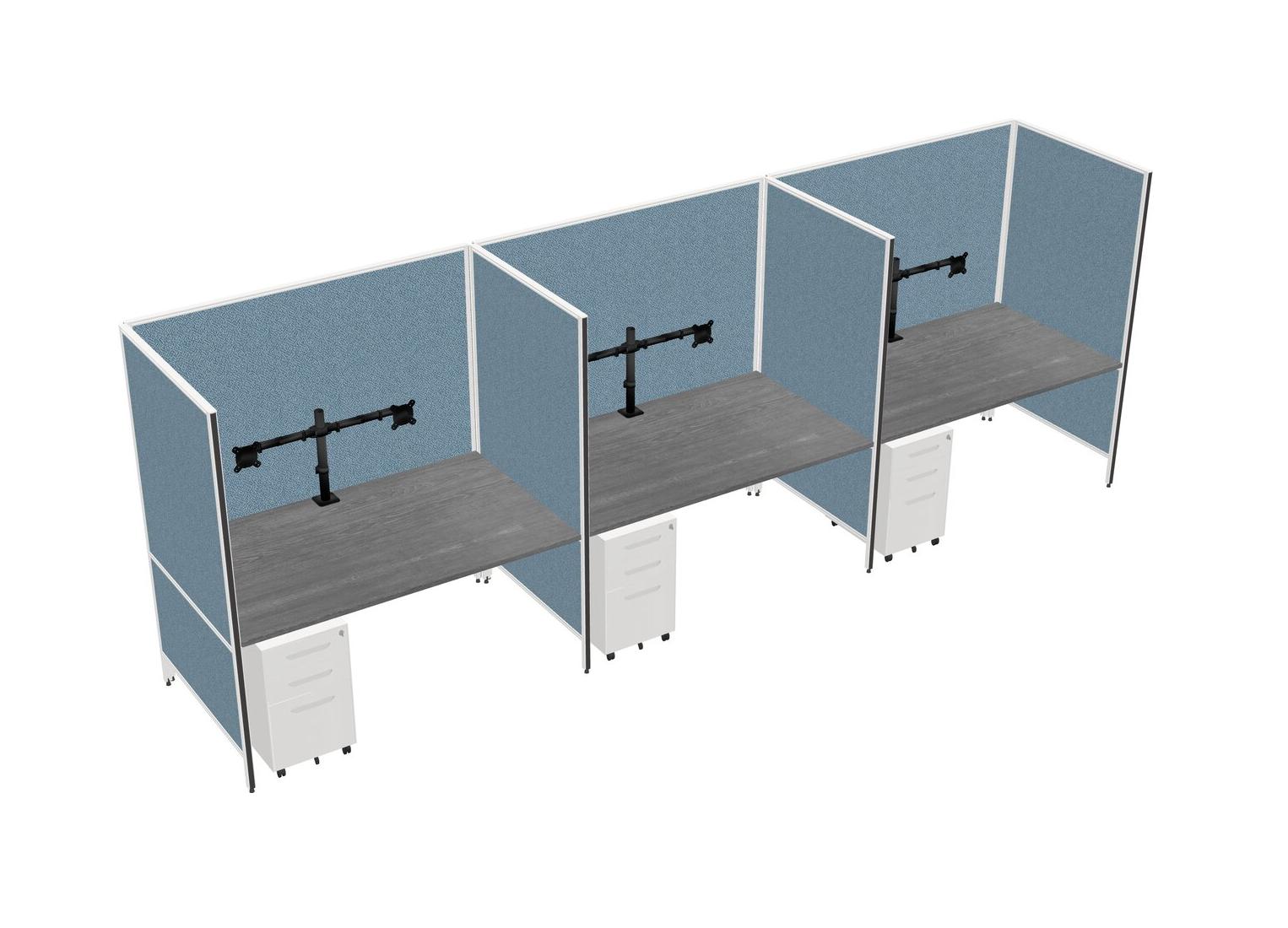 Grey Flexible Panel System For 3 + Metal Mobile Drawers + Monitor Arm (double Arms)