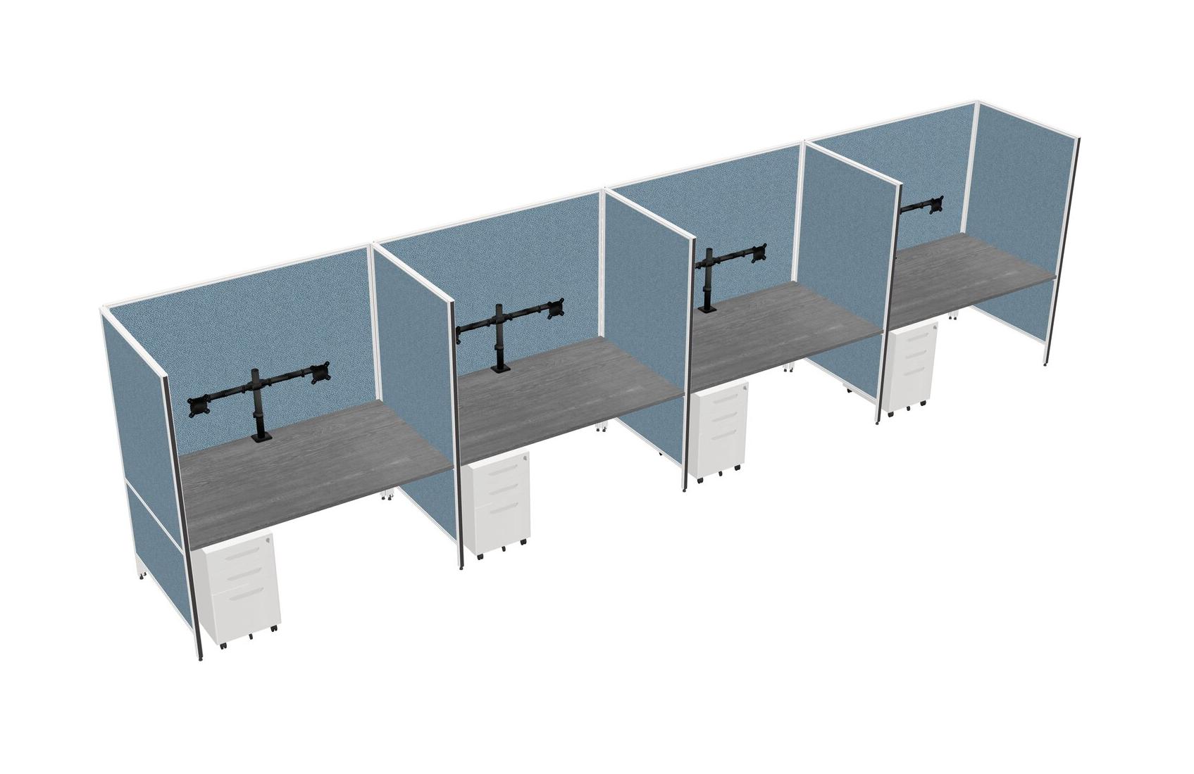 Grey Flexible Panel System For 4 + Metal Mobile Drawers + Monitor Arm (double Arms)
