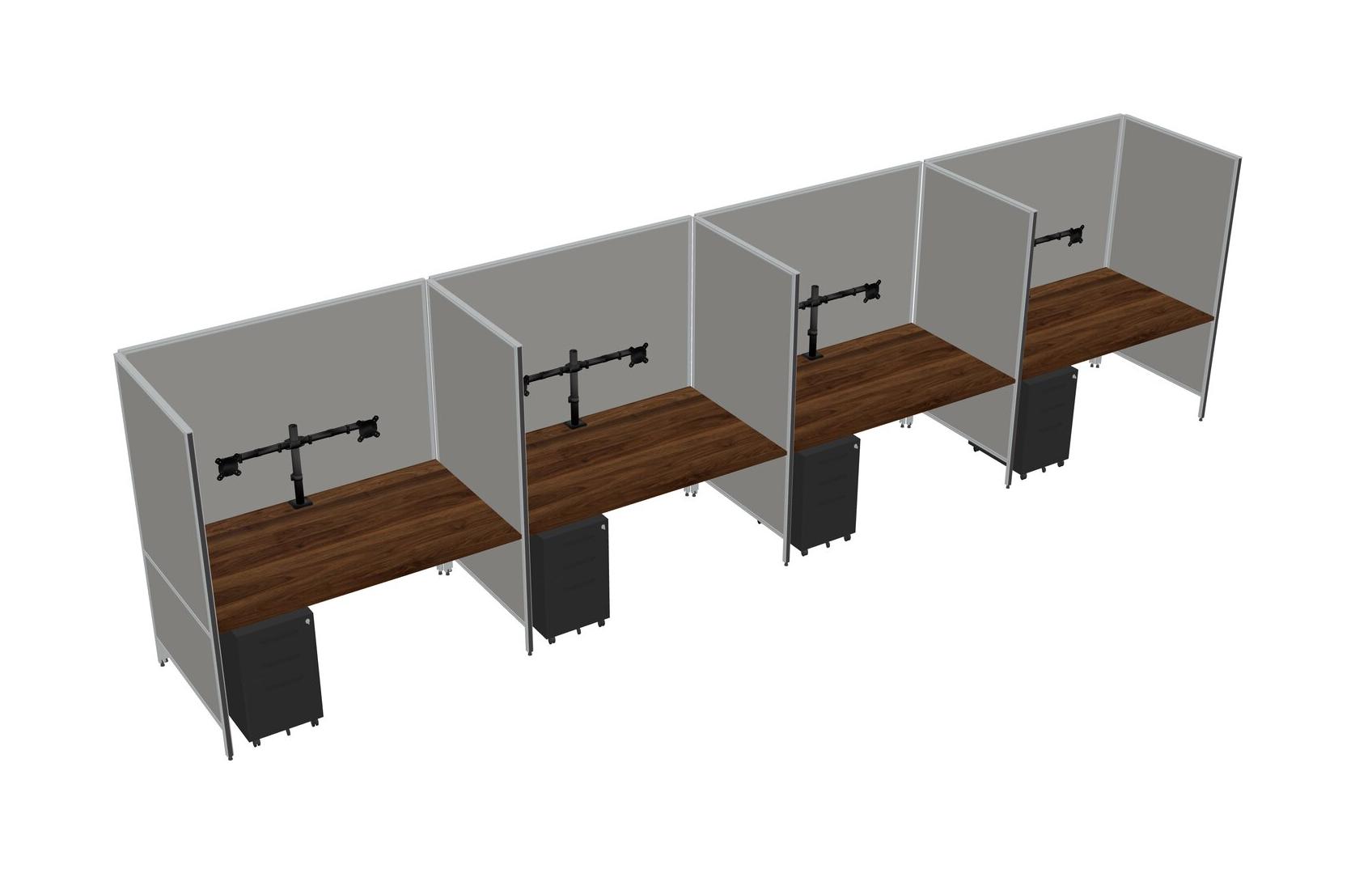 Columbia Walnut Flexible Panel System For 4 + Metal Mobile Drawers + Monitor Arm (double Arms)