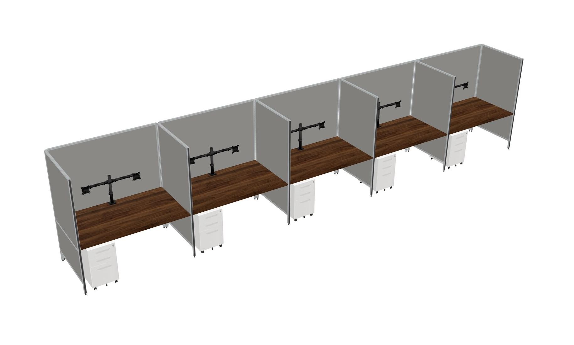 Columbia Walnut Flexible Panel System For 5 + Metal Mobile Drawers + Monitor Arm (double Arms)