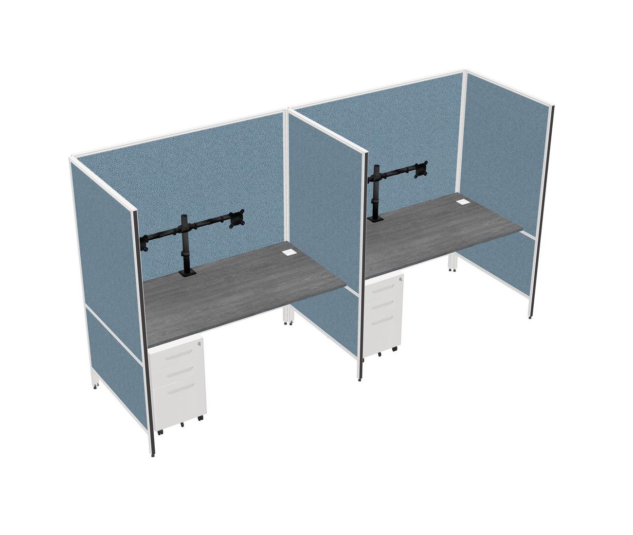 Grey Flexible Panel System For 2 + Metal Mobile Drawers + Monitor Arm (double Arms)