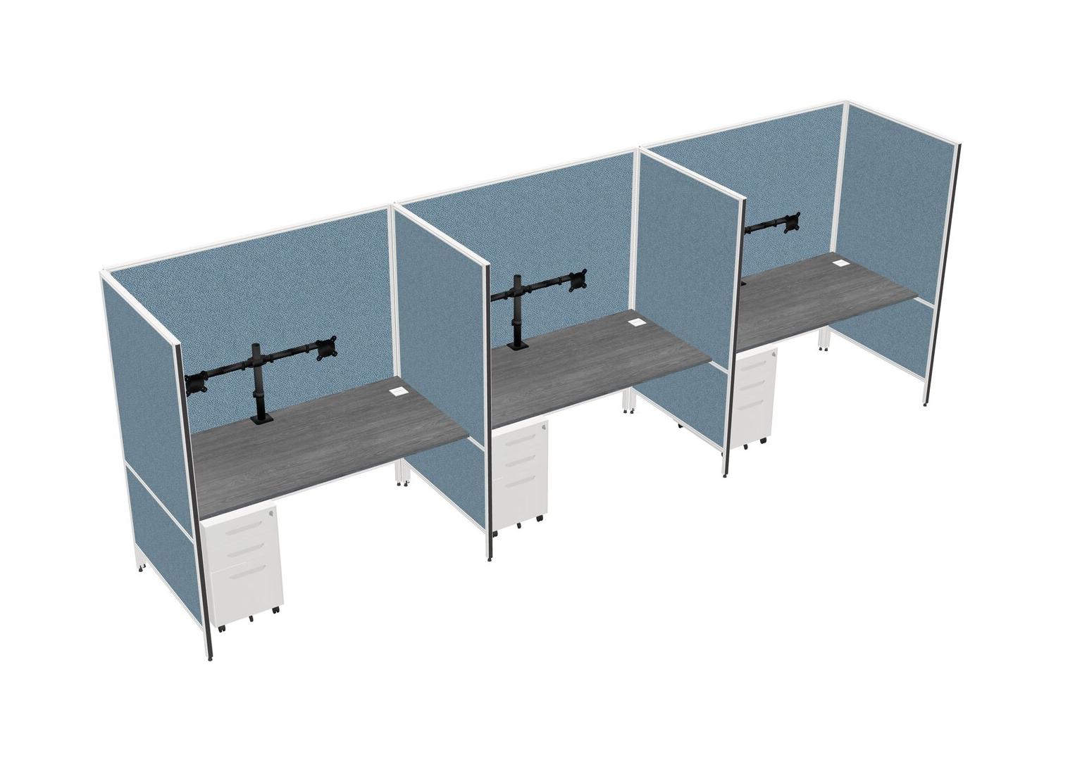 Grey Flexible Panel System For 3 + Metal Mobile Drawers + Monitor Arm (double Arms)