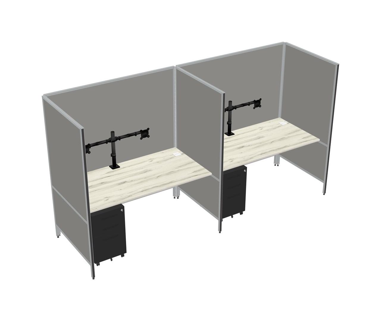 Heinne Holz Flexible Panel System For 2 + Metal Mobile Drawers + Monitor Arm (double Arms)