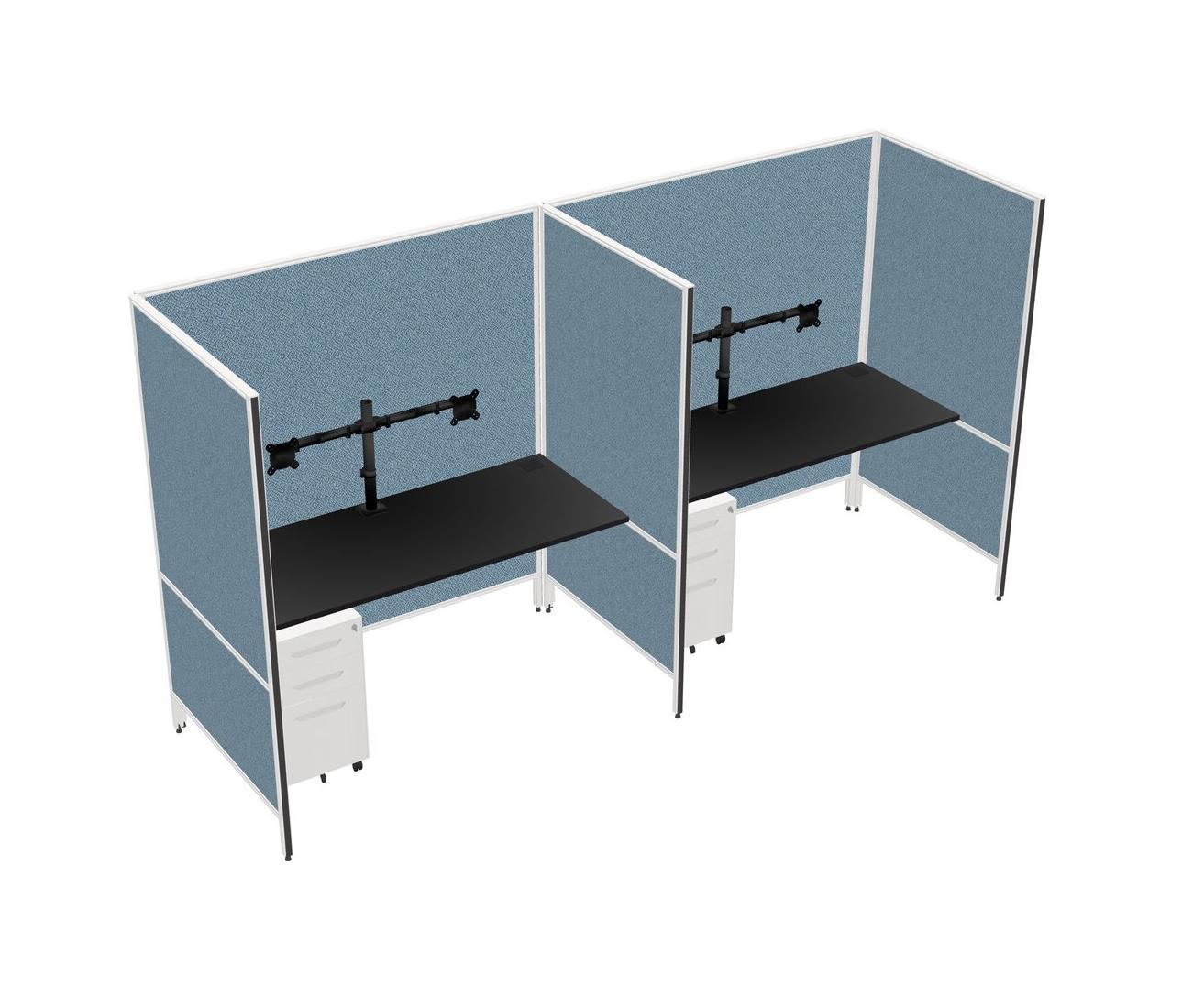 Black Flexible Panel System For 2 + Metal Mobile Drawers + Monitor Arm (double Arms)