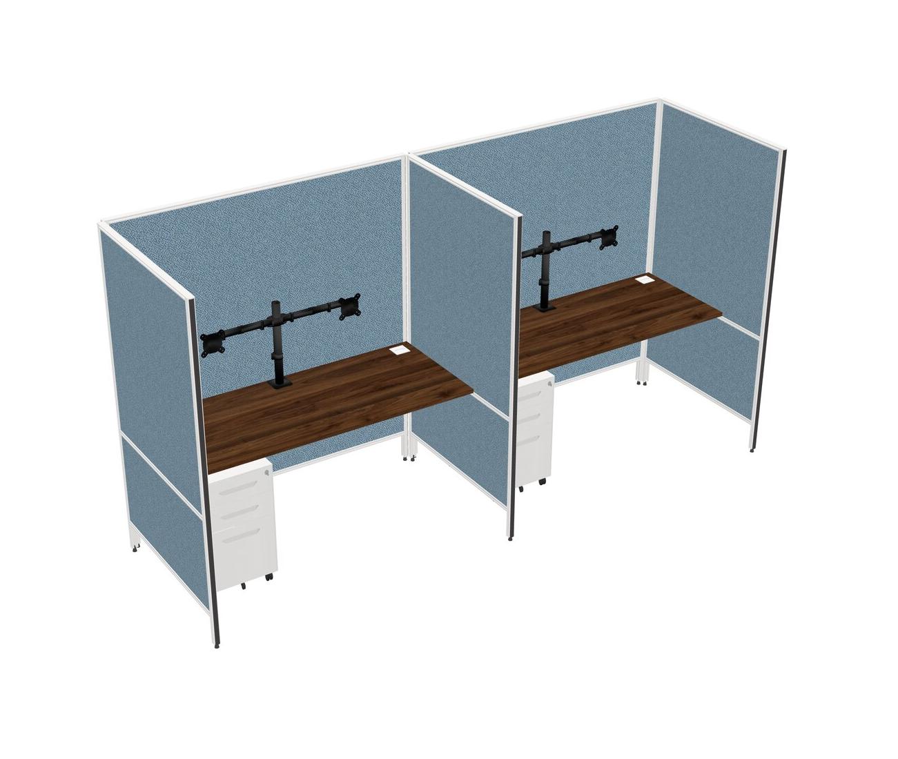 Columbia Walnut Flexible Panel System For 2 + Metal Mobile Drawers + Monitor Arm (double Arms)