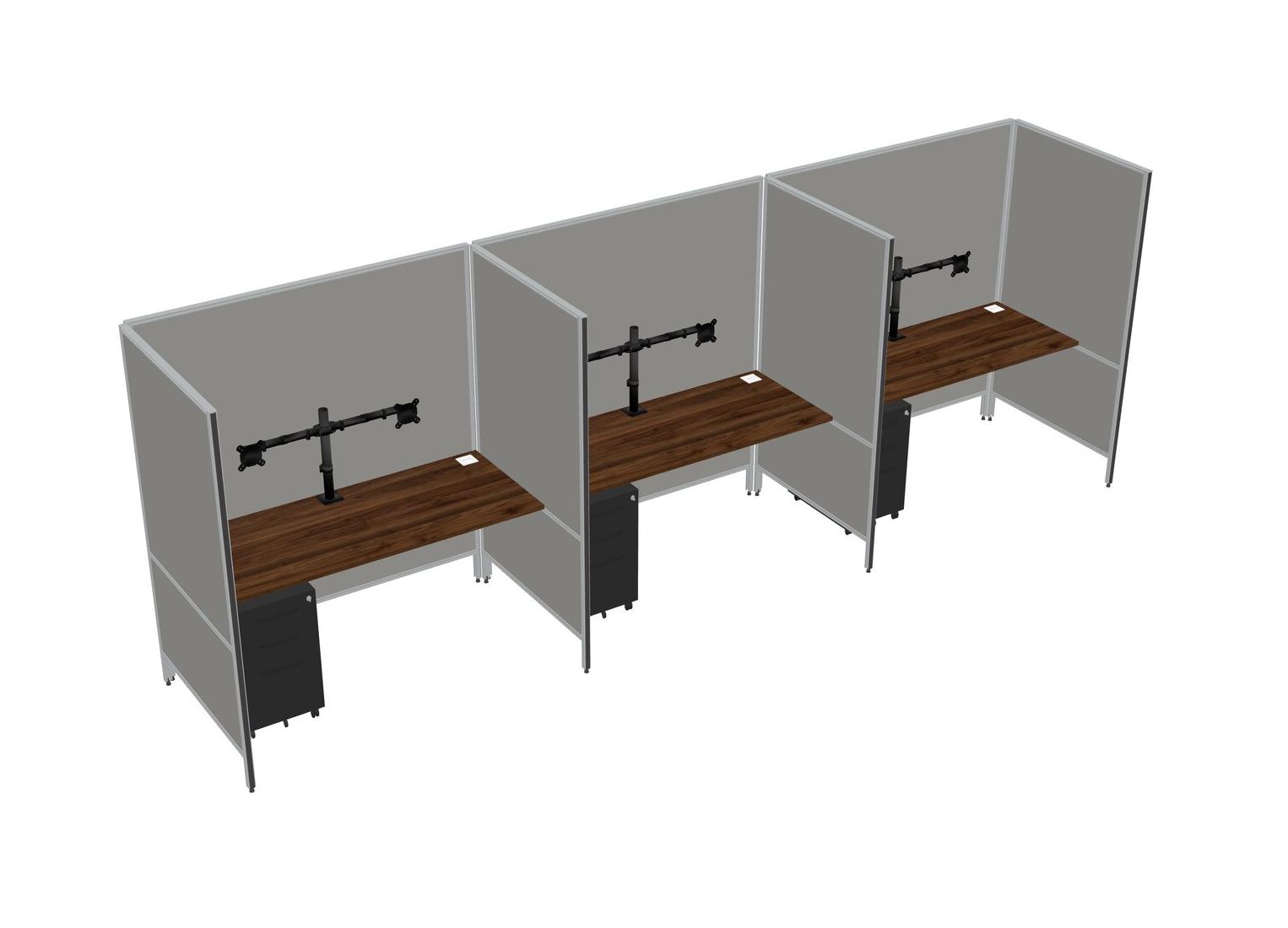 Columbia Walnut Flexible Panel System For 3 + Metal Mobile Drawers + Monitor Arm (double Arms)