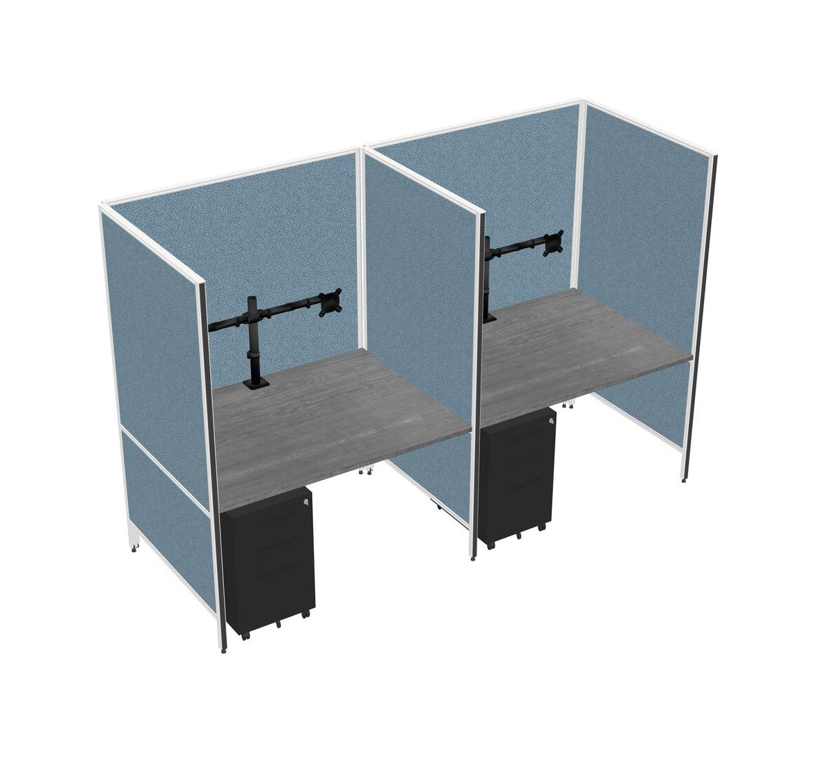 Grey Flexible Panel System For 2 + Metal Mobile Drawers + Monitor Arm (double Arms)