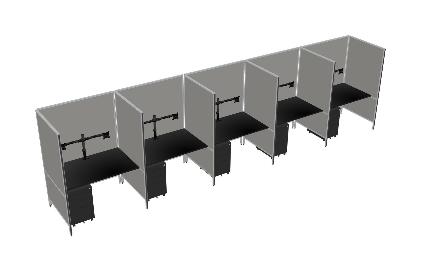 Black Flexible Panel System For 5 + Metal Mobile Drawers + Monitor Arm (double Arms)