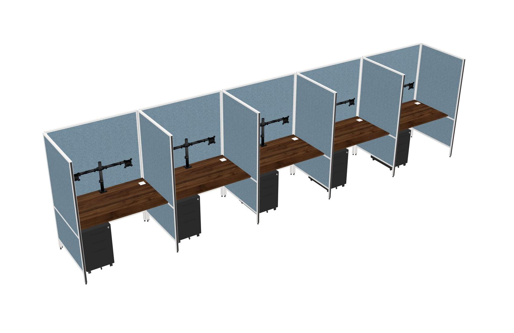 Columbia Walnut Flexible Panel System For 5 + Metal Mobile Drawers + Monitor Arm (double Arms)