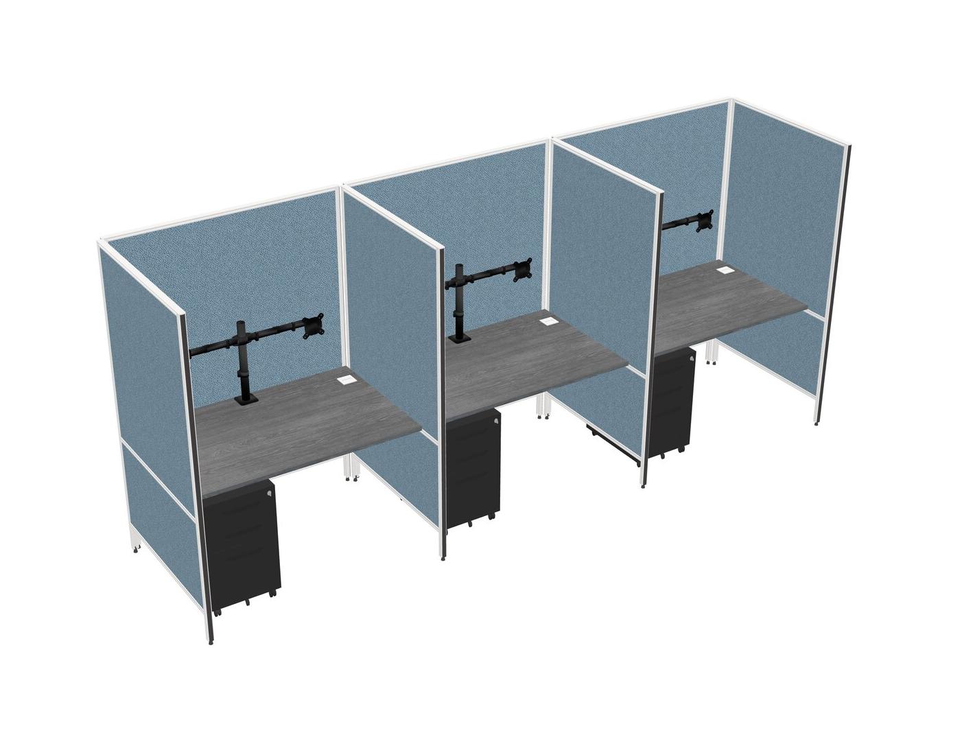 Grey Flexible Panel System For 3 + Metal Mobile Drawers + Monitor Arm (double Arms)