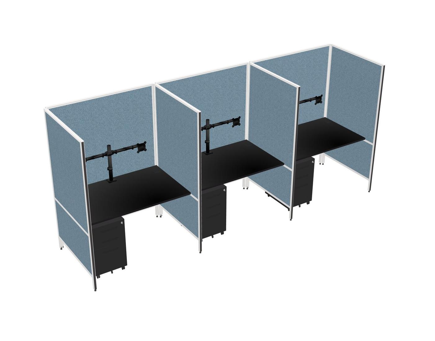 Black Flexible Panel System For 3 + Metal Mobile Drawers + Monitor Arm (double Arms)
