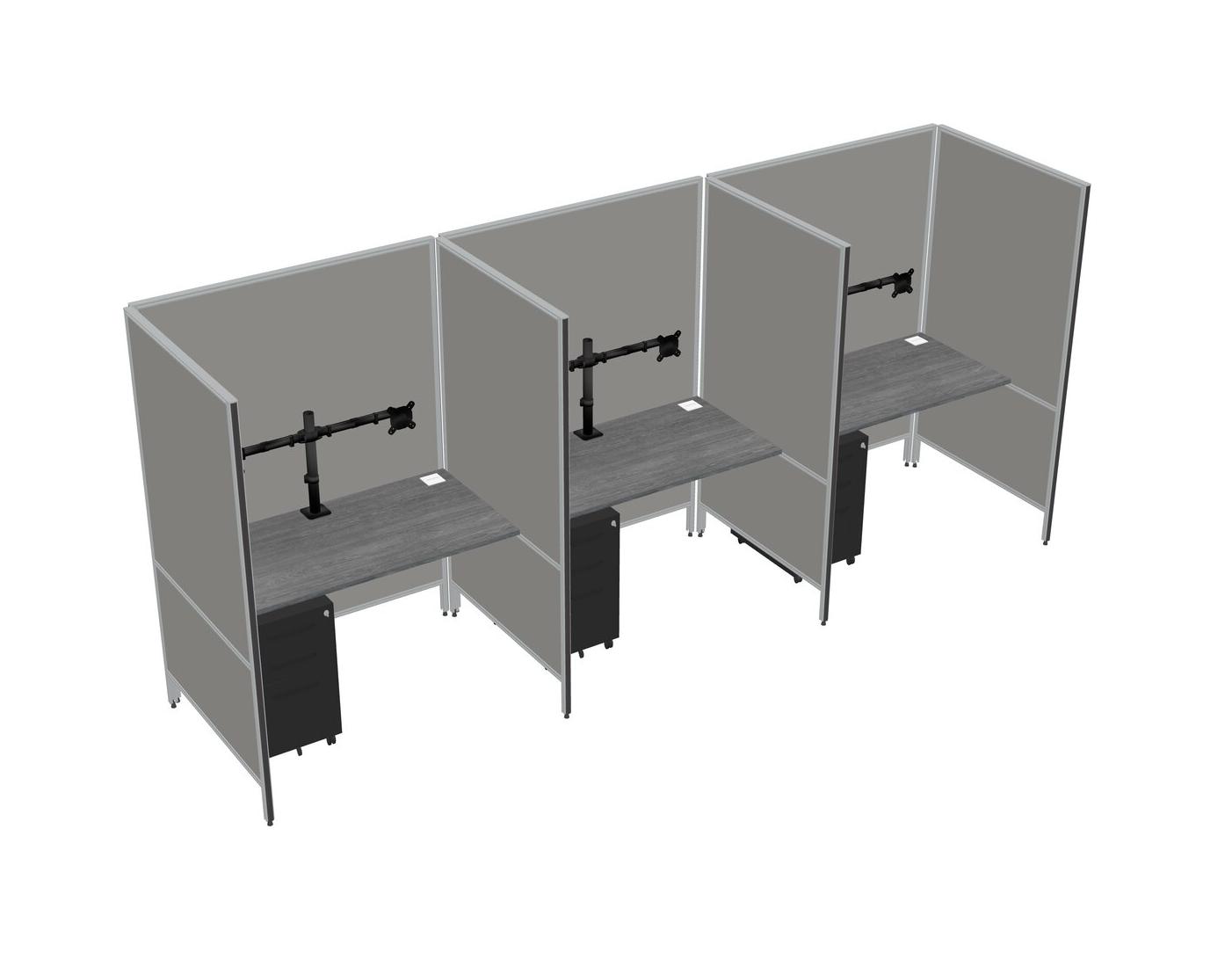 Grey Flexible Panel System For 3 + Metal Mobile Drawers + Monitor Arm (double Arms)
