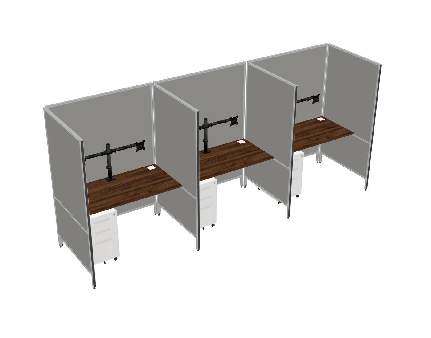Columbia Walnut Flexible Panel System For 3 + Metal Mobile Drawers + Monitor Arm (double Arms)