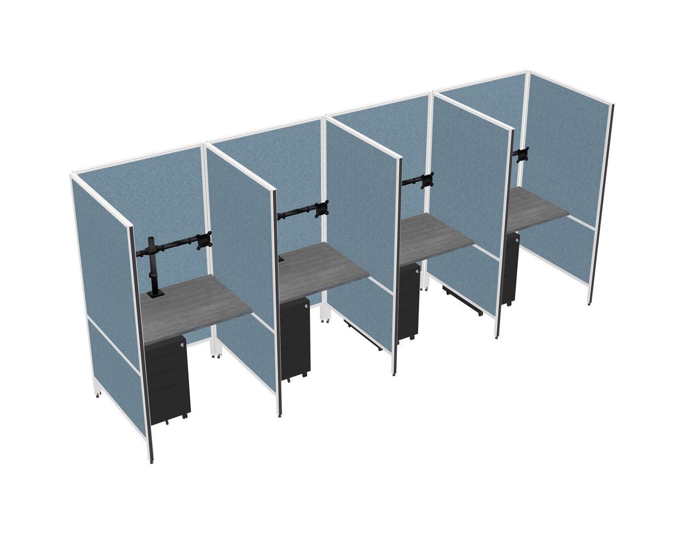 Grey Flexible Panel System For 4 + Metal Mobile Drawers + Monitor Arm (double Arms)