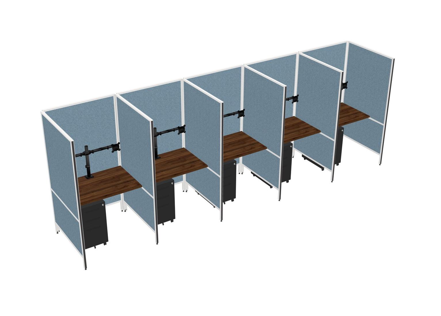 Columbia Walnut Flexible Panel System For 5 + Metal Mobile Drawers + Monitor Arm (double Arms)