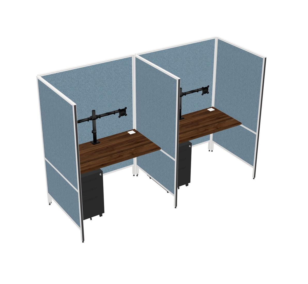 Columbia Walnut Flexible Panel System For 2 + Metal Mobile Drawers + Monitor Arm (double Arms)