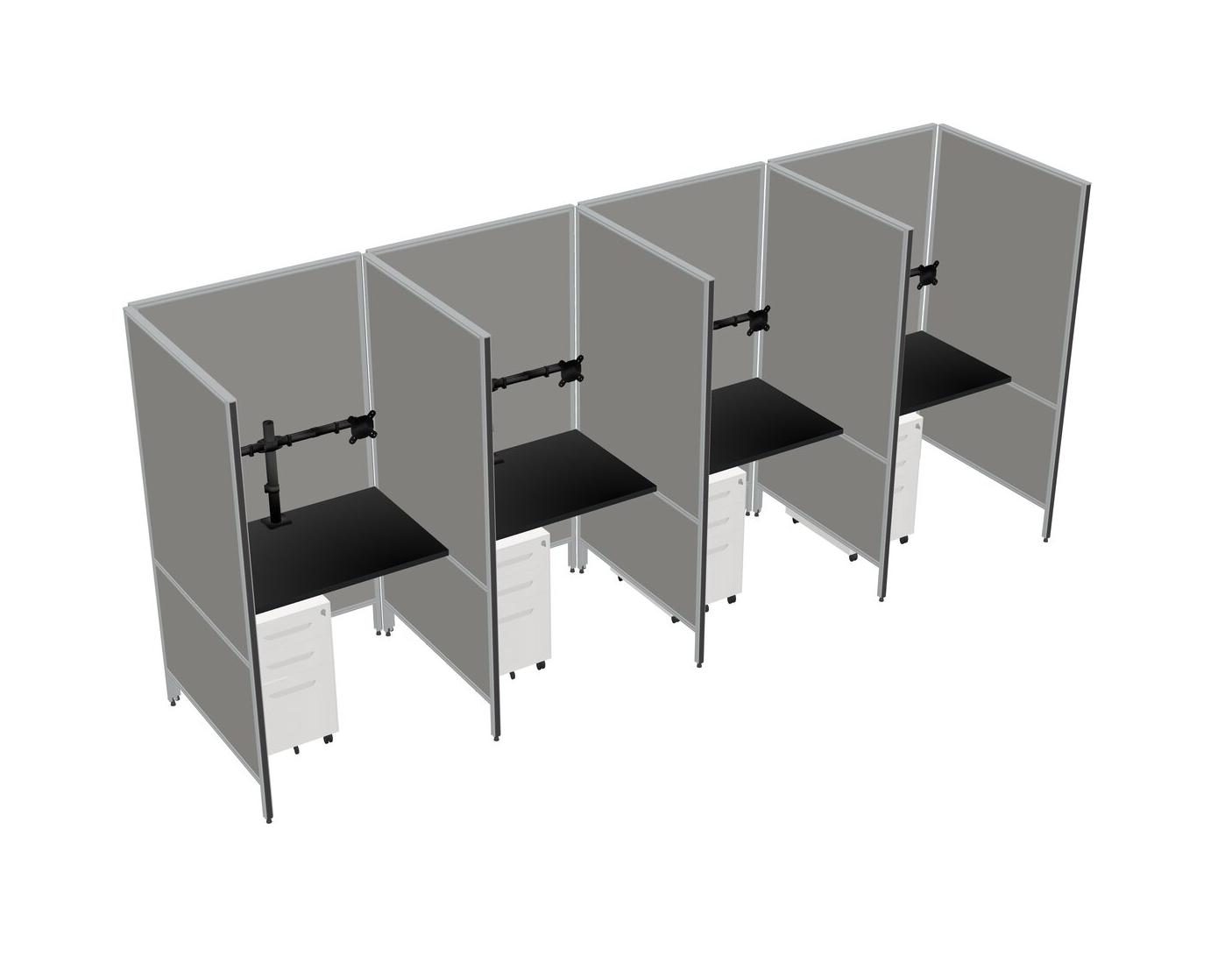 Black Flexible Panel System For 4 + Metal Mobile Drawers + Monitor Arm (double Arms)